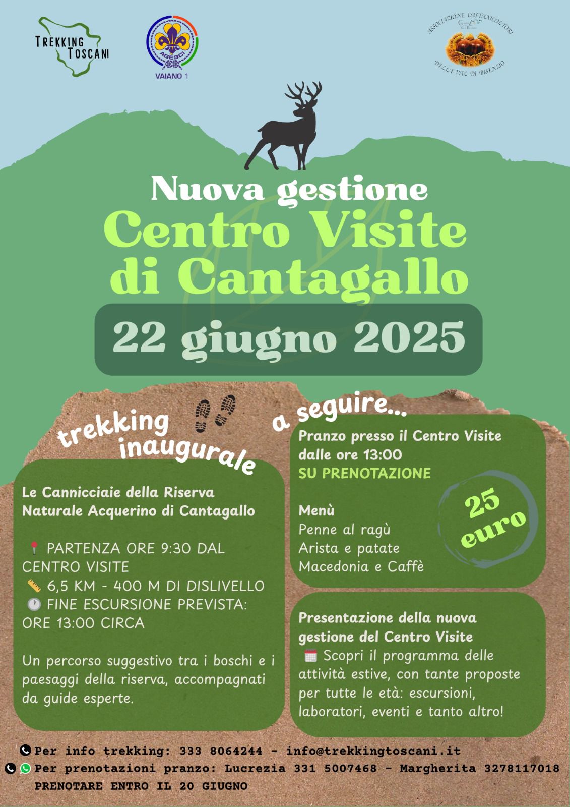 "text": ". La giornata prevede un\u2019escursione guidata nella Riserva naturale Acquerino-Cantagallo con partenza alle ore 9.30 dal Centro visite e, a seguire, un pranzo conviviale su prenotazione. Nel pomeriggio sar\u00e0 presentato il programma delle attivit\u00e0 estive, che spazieranno dalle escursioni ai laboratori, dagli eventi alle iniziative dedicate a tutte le et\u00e0. L\u2019obiettivo \u00e8 quello di rilanciare il Centro Visite come punto di riferimento per cittadini, famiglie, visitatori e appassionati della natura."